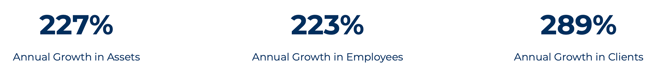 We are the next generation in premier wealth management. We judge our success and value based on how well your financial goals are achieved, not ours, which is clearly shown below by our growth just last year. We provide our clients with personalized financial solutions and advice to help them at every stage of their lives. Our financial services and solutions cover everything from financial planning and portfolio management to tax preparation, insurance solutions, debt management, and will preparation.